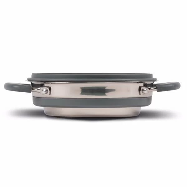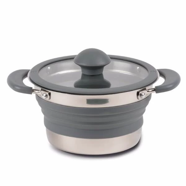 The Kampa Folding Saucepan Small, is small and compact ideal for campers and camper vaners who want to save space but still want a high quality saucepan.