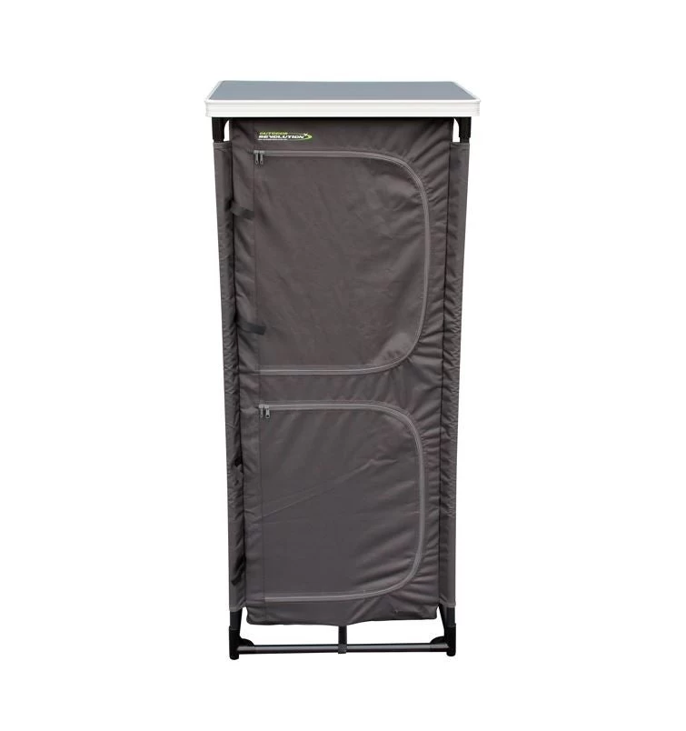 The Milano Camp Wardrobe is a spacious storage cupboard featuring 4 level, twin compartment shelving with rigid shelf inserts and zip back doors with handy external side pockets. Perfect for storing clothing and other camping articles. The sturdy easy erect construction simply pulls apart and folds down flat so it can be transported and stored compact in its own storage carry bag. Perfect for Tents and Awnings where space is at a premium.
