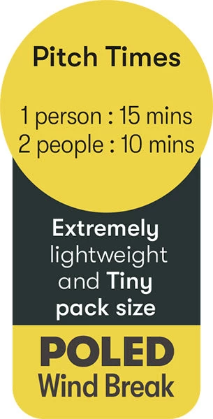 The windbreak comes in its own zipped, carry bag with dual handles making it easy to carry and store away. The windbreak breaks down to an incredibly small pack size which is excellent and makes storing it away even easier.