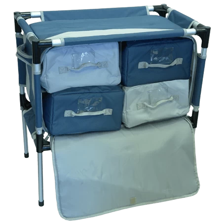 The Royal 4 Drawer Storage Unit is an Innovative storage solution with a stylish slatted design work top, with large storage compartment underneath, with 4 storage boxes inside.