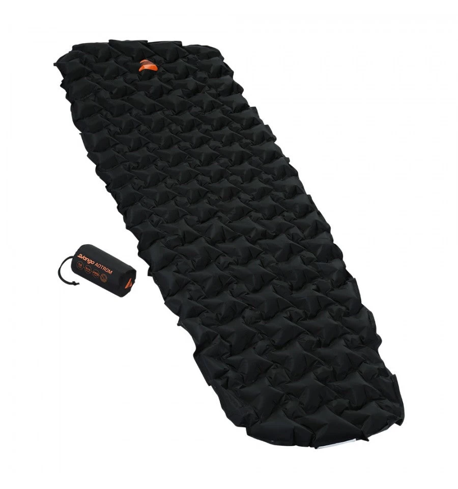 The Vango Aotrom Sleeping Mat is the lightest sleeping mat Vango make weighing in at only 410g, the new Aotrom trek sleeping mat is one of the most technical and advanced sleeping mats in the Vango range. It is the ultimate in light weight and small pack size as it packs down to around the size of a can of juice, whilst not compromising in comfort. It’s air filled Welded Channels, mould to the contours of the ground and of your body for a more comfortable sleep.