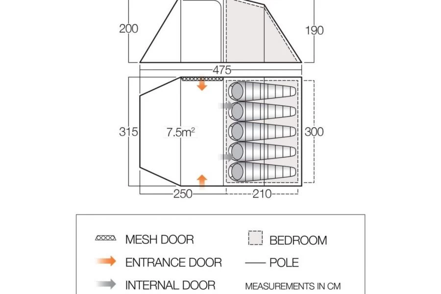 - Linked-In Groundsheet – Easy to clean groundsheet that can be attached or detached from the living area. Simply roll under the bedroom area when not required