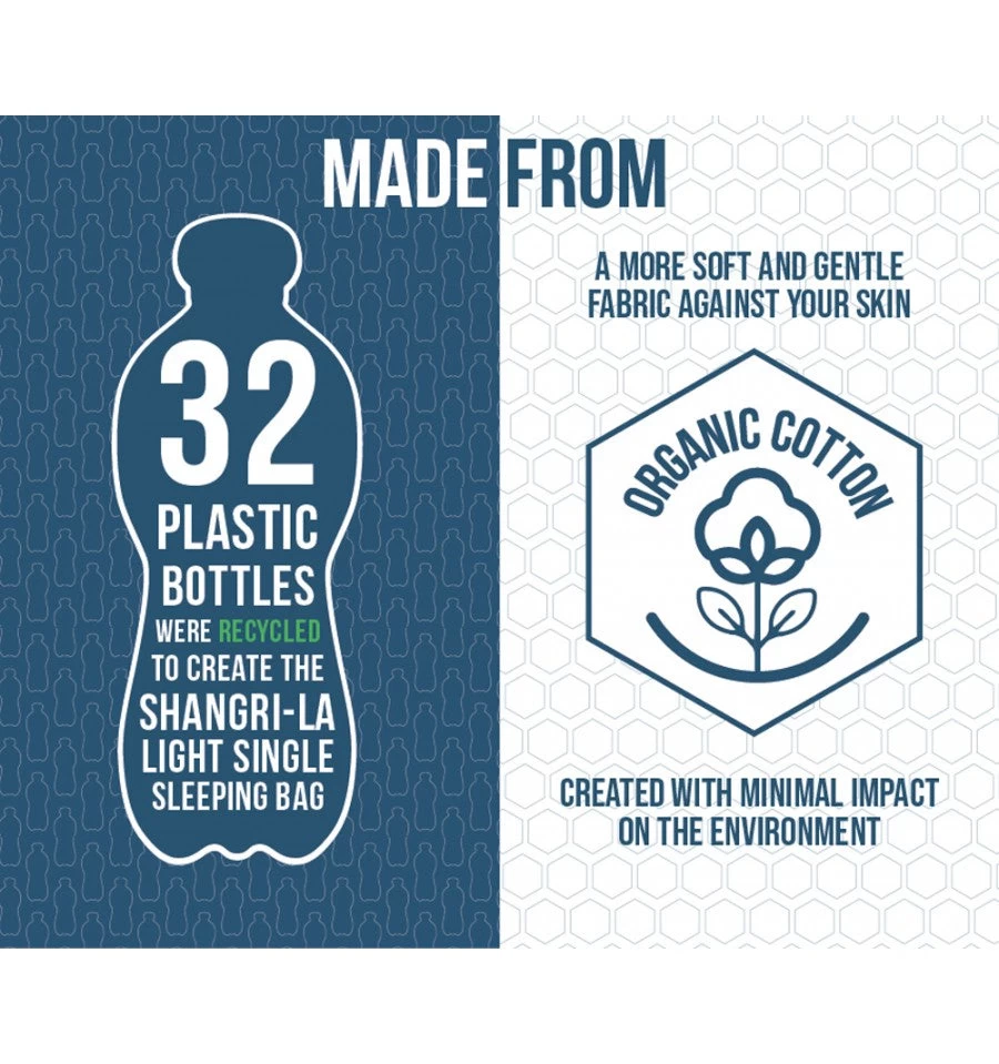 - Organic Polycotton Shell- Created using a mixture of recycled polyester and organic cotton to create a high quality, sustainable polycotton fabric. This shell fabric offers increased comfort, softness and a luxury home from home sleeping experience.
